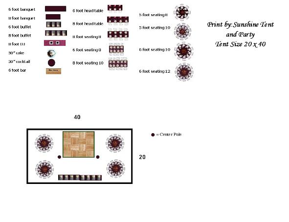 at 6 foot rounds tables seating 12 to a table. This tent is a frame style tent. Using a frame style tent offers some flexibility when laying out a tent. This is very helpful when placing a dance floor under a small tent.