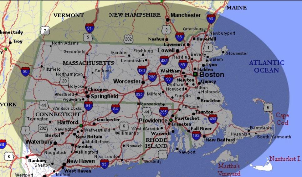 The map below displays our basic delivery area